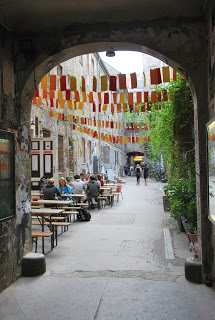 No caminho achamos um lugar muito interessante. É uma espécie de beco, onde na época da Guerra funcionava uma fábrica de vassouras, o proprietário se chamava Otto Weidt. Ele ficou conhecido por empregar e até esconder vários judeus.