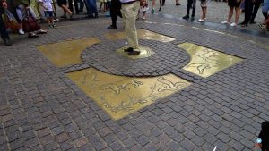 Ainda na frente do portão, antes de entrar na Praça Vermelha, encontra-se no chão uma bússola que é o marco zero das autoestradas da Rússia. Dizem que ficar em cima da bússola e jogar uma moeda para trás, traz sorte. Mas assim que os turistas jogam suas moedas, algumas pessoas ficam ali, desesperadas para pegar essas moedas e por consequência, quebram toda o clima  e a magia da lenda.
